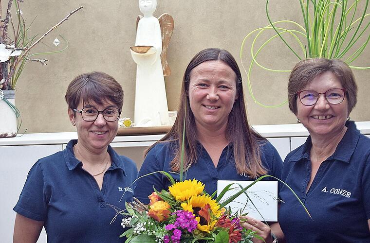 Natalia Belic (links), Fachärztin für Innere Medizin, und Anita Conze (rechts), Fachärztin für Allgemeinmedizin, freuen sich gemeinsam mit ihrer Mitarbeiterin Julia Zeitz über 25 gemeinsame Jahre in der Gemeinschaftspraxis in Schondra.