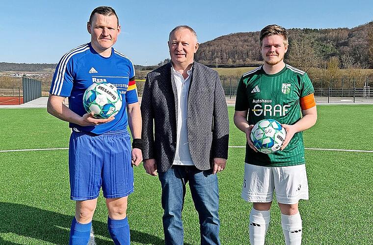 Die zukünftigen Schülerinnen und Schüler des Schulzentrums Hammelburg erhalten neben einem modernen Schulgebäude auch eine neue Sportanlage. Der dazugehörige Kunstrasenplatz wurde im Rahmen eines Spiels der SG FC Hammelburg/FC Fuchsstadt gegen die SG Arnshausen/Reiterswiesen/Bad Kissingen eingeweiht. Vor dem Spiel erhielten beide Mannschaften jeweils einen signierten Fairtrade-Fußball von Landrat Thomas Bold.