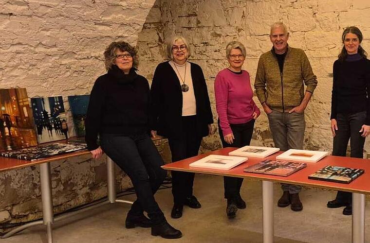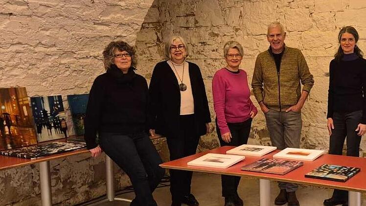 „Kunst und Glühwein“ lautet das Motto noch bis Sonntag, 21. Dezember, beim kleinen Kunstmarkt im Gewölbekeller des Museums Obere Saline. Künstlerinnen und Künstler von „ART 97688 Bildende Kunst Bad Kissingen“ zeigen ihre Werke. Wer auf der Suche nach einem besonderen Weihnachtsgeschenk ist, mit den Künstlern ins Gespräch kommen möchte oder einfach die Kunstwerke in vorweihnachtlicher Atmosphäre genießen möchte, ist im „Golden Basement“, wie der Gewölbekeller genannt wird, genau richtig, heißt es in einer Pressemitteilung. An den Wochenenden versorgen die Künstler und Künstlerinnen die Besucher mit Glühwein und Weihnachtsgebäck. Ideal lässt sich der Besuch des Kunstmarkts mit der Besichtigung der aktuellen Sonderausstellung „König Ludwig II. und Bad Kissingen. Kaiserkur & Frankenfahrt“ verbinden, heißt es weiter in der Pressemitteilung. Der Kunstmarkt im Museum Obere Saline hat die selben Öffnungszeiten wie das Museum, und zwar mittwochs bis sonntags von 14 bis 17 Uhr. Der Eintritt zum Kunstmarkt ist frei. Unser Foto zeigt die Organisatoren (von links) Heidi Lauter, Silvia Pfister-Stanjek, Eva Feichtinger, Paul Kemmer und Ulrike Heim. red/Foto: Elisa Rakowski
