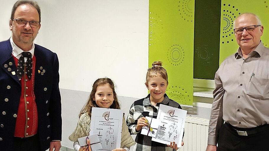 Zwei besondere Ehrungen standen bei der Generalversammlung des MGV Westheim 1890 e.V. auf der Tagesordnung: Paula Müller und Ella Pfennig wurden jeweils für fünf Jahre Singen im Kinderchor „Westolinos“ geehrt. Die beiden erhielten neben der Urkunde der Chorjugend des Fränkischen Sängerbundes viele gute Wünsche mit auf den Weg, damit sie noch lange Spaß am Singen haben mögen, und natürlich gab es einen riesigen Applaus für die beiden, immerhin waren sie bereits mit drei Jahren in den Kinderchor eingetreten.