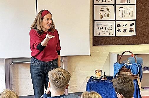 Gebannt lauschten die Schülerinnen und Schüler den verschiedenen Märchen, die die Erzählerin in ihrem „Geschichtenkörbchen“ mitgebracht hatte. Mit ihrer ausdrucksstarken Stimme und ihrer lebendigen Erzählweise ließ Gesine Kleinwächter die Figuren und Handlungen vor den Augen der Kinder lebendig werden.