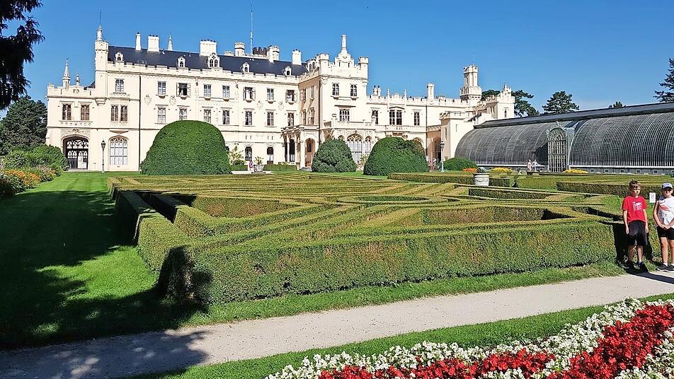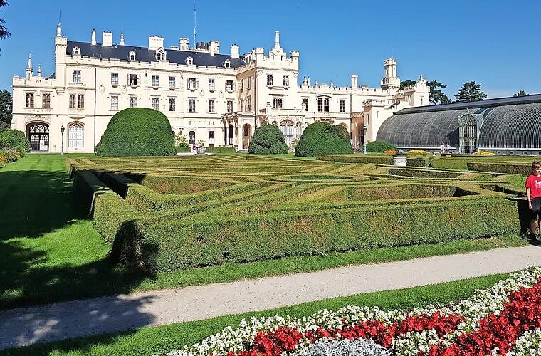Ein Tagesausflug ging zum schönsten Schloss Tschechiens, Lednice, die ehemalige Sommerresidenz der Lichtensteiner. Die Lichtensteiner waren eines der mächtigsten Adelsgeschlechter Europas und ließen einen pompösen, eleganten französischen und einen wunderschönen englischen Garten errichten. Nach einer Schlossbesichtigung mit Führung ging es dann weiter zum nächsten Schloss, Valtice. Dieses Schloss ist nicht nur für seine Schönheit berühmt, sondern auch für seine langjährige Weinbautradition.
