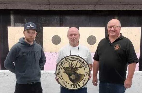 Vorderlader-Abteilungsleiter Kevin Schölzke und 2. Schützenmeister Artur Haupt gratuliert dem neuen Sieger Wolfgang Mika. Den zweiten Platz errang Artur Kuligowski vor Kevin Schölzke. red