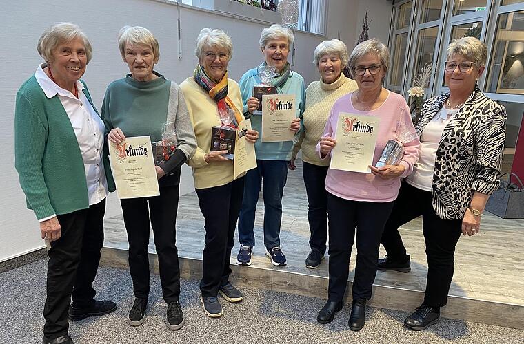 Nach der Kaffeepause wurden für ihre langjährige Zugehörigkeit fünf Mitglieder und eine Therapeutin geehrt. Neben einer Urkunde gab es auch ein kleines Geschenk als Zeichen der Wertschätzung. Für ihre 15-jährige Treue wurde Eva Ackermann, für zehnjährige Treue Gertrud Fuchs, Ursula Götz, Inge Kunz und Angela Roth mit Therapeutin Jana Haase geehrt.