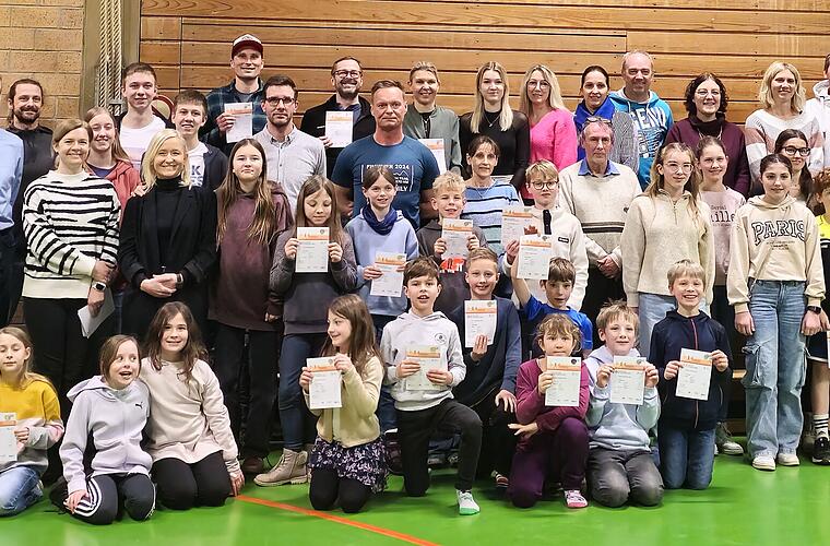 Erfreulich war, dass neben den Kindern auch die Eltern immer mehr Interesse am Sportabzeichen-Erwerb zeigen. Auch 1. Bürgermeister Mario Götz hat sich mit seiner aktiven Teilnahme das Goldabzeichen gesichert. Besonderen Dank sprach Manger den Bademeistern vom Saaletalbad Hammelburg aus, die Schwimmleistungen abnahmen und bestätigten.