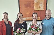 Von rechts: Peter Huber (Bereichsleiter), Jana Karbowy (ehemalige Pflegedienstleitung), Bianca Hümpfner (neue Pflegedienstleitung) und Anna Römelsberger (Hausleitung).