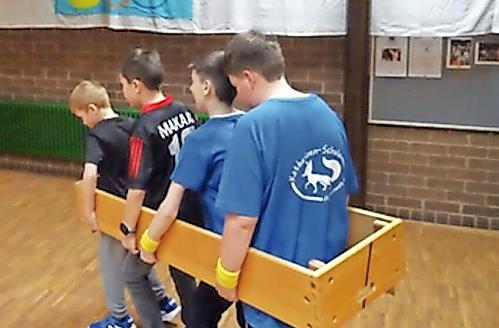 Nach einem Olympia-Song und einem anschließendem „Warm up“ ging es los. Es gab verschiedene Stationen, wie Skispringen, Biathlon, Bob fahren, Skiabfahrt, Eishockey oder Skilanglauf. Bei einem gemeinsamen Sportlerfrühstück konnten sich die Mädchen und Jungen beider Schulen weiter kennenlernen.