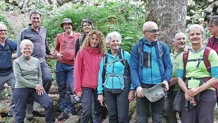 Nach einer kurzen Vorstellungsrunde startete die zwölfköpfige Truppe unter der Leitung von Simone Schmied am Jugendzeltplatz Hillenberg. Auf schönen Wanderwegen ging es bergan über die Rother Kuppe zur Thüringer Hütte. Nach einer kurzen Rast führte der Weg an der Ruine der Gangolfskapelle vorbei zur Basaltprismenwand. Das nächste Ziel war der Basaltsee, und weiter ging es am Heidelstein vorbei Richtung Rotes Moor, wo es Kuchen und Kaffee im Nabu-Haus gab. Von da an ging’s bergab Richtung Wüstensachsen, Ehrenberg. In der Pension „Lisa’s Welt“ endete der Tag nach 26 Kilometern und 680 Höhenmetern erschöpft, mit müden Beinen in geselliger Runde. Nach einem ausgiebigen Frühstück brach die Gruppe am zweiten Tag zum Schafstein auf, der eine beeindruckende Aussicht bot. Richtung Reulbach, an der St.-Martinskapelle vorbei, ging es abwärts nach Seiferts. Es folgte ein kurzer knackiger Aufstieg zum Dreiländereck Bayern/Hessen/Thüringen und eine wohlverdiente Rast am Schwarzen Moor. Über den Eisgraben, der wegen der anhaltenden Trockenheit leider nur ein dünnes Rinnsal als Wasserfall zu bieten hatte, und die Frauenhöhle ging es nach 24 Kilometern und 740 Höhenmetern zurück zum Parkplatz. Beim Abschied konnten die Teilnehmenden auf zwei tolle Wandertage bei bestem Wetter zurückblicken. Sie waren ein bisschen stolz und zufrieden, eine doch recht lange Wanderstrecke geschafft zu haben, und bedankten sich bei Wanderleiterin Simone Schmied, die diese Tour mit sehr schönen Wegen und Ausblicken geführt hatte. red
