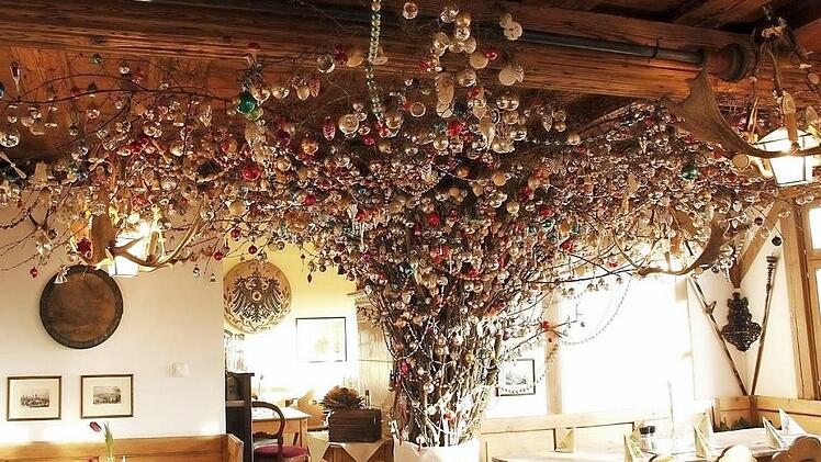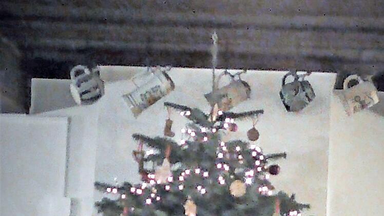 Immerhin gab es Ende des 19. Jahrhunderts in waldreicherem Gebiet des Bamberger Raumes schon kleine Bäume, die in den Bauernstuben an die Decke gehängt wurden. Hierüber berichtet der Würzburger Lehrer Karl Spiegel, der auf seiner Suche nach Sagen und Märchen die Orte des Steigerwalds aufsuchte: In den 1880er Jahren und "auch jetzt noch", schreibt er 1913, wird "der kleine Christbaum an die Wand gehängt" ... "Der Gipfel ist folglich an der niederen Stubendecke. Wo viele Kinder im Hause sind, gibt es sogar zwei und drei Bäumchen. Das Bäumchen wurde und wird mit Zuckerstücken (Schlotfeger, Docken, Reiter, Herz usw.) und mit weißen Nüssen behängt. Die Nüsse tauchte man in Wasser und zog sie dann durch Mehl, das war die Färbung."