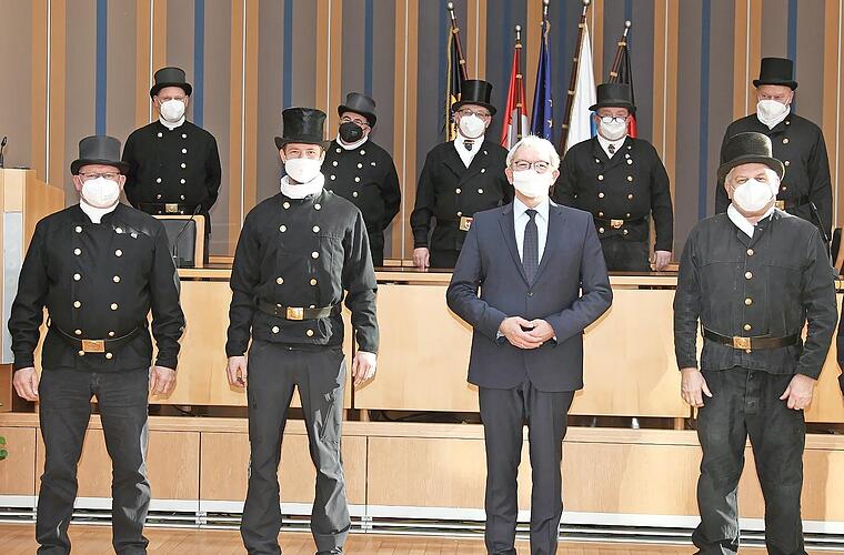 16 Schornsteinfegermeister erhielten jetzt ihre Bestellungsurkunden. Landrat Johann Kalb ( CSU ) begrüßte die Schornsteinfegermeister, die von Januar 2022 bis Dezember 2028 für die Kehrbezirke im Landkreis Bamberg verantwortlich sein werden. Im Landkreis Bamberg gibt es laut der Mitteilung aus dem Landratsamt insgesamt 16 Kehrbezirke, zwölf Kehrbezirke bekommen ab Januar einen neuen bevollmächtigten Bezirksschornsteinfeger. Acht Bezirksschornsteinfeger wurden bereits 2015 bestellt und werden zum 1. Januar 2022 erneut für sieben weitere Jahre bestellt. Foto: Rudolf Mader