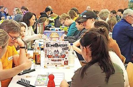 Schon eineinhalb Stunden nach Beginn der Veranstaltung zählte man 200 große und kleine Besucherinnen und Besucher. Ehrenamtliche aus den Büchereien in Hirschaid und Sassanfahrt sowie dem Hirschaider Jugendzentrum (Juz) hatten rund 350 Spiele aus den unterschiedlichsten Quellen zusammengetragen, um zu zeigen, welche Bandbreite es an Spielen gibt: angefangen von aufwendigen Strategiespielen über neue Karten- und Brettspiele bis hin zu den Klassikern wie Halma und Schach. Für Letztere hatte man extra einen Tisch freigehalten, und dort konnten die Gäste gegen die Ehrenamtlichen spielen.