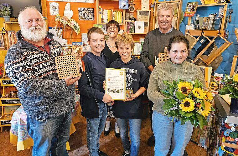 Die Preisverleihung fand bei der Saisonabschlussfeier der Bienen-Infowabe statt, musikalisch begleitet vom Duo „Bauklötze staunen“.