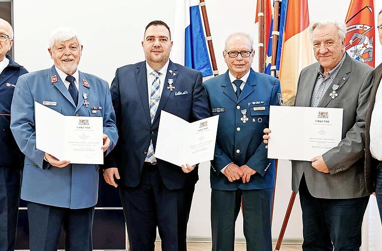 Auf zusammen 100 Jahre ehrenamtliches Engagement kommen Peter Süß beim Technischen Hilfswerk sowie Fabian Reh und Hans-Joachim Wagner beim Malteser Hilfsdienst. Alle drei wurden nun für ihre...