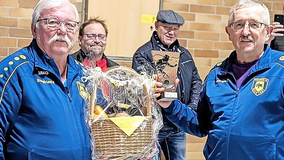 Karl Senger und Abteilungsleiter Andreas Förner dankten dem Jubilar für seine außergewöhnliche Treue und seinen unermüdlichen Einsatz – und hoffen auf viele weitere Spiele mit dem erfahrenen Sportler.