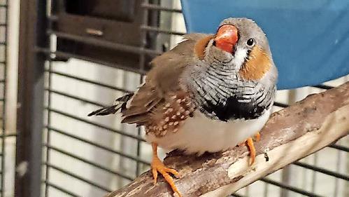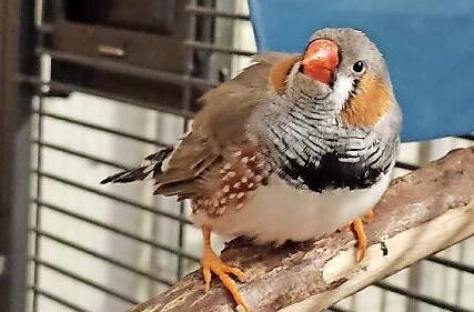 Jonas, Zebrafink, geboren 2022: Dieser kleine Mann sucht Anschluss in einem vorhandenen Schwarm. Er will einen ausreichend großen Käfig oder sogar eine Voliere, gerne mit zusätzlichem Freiflug.