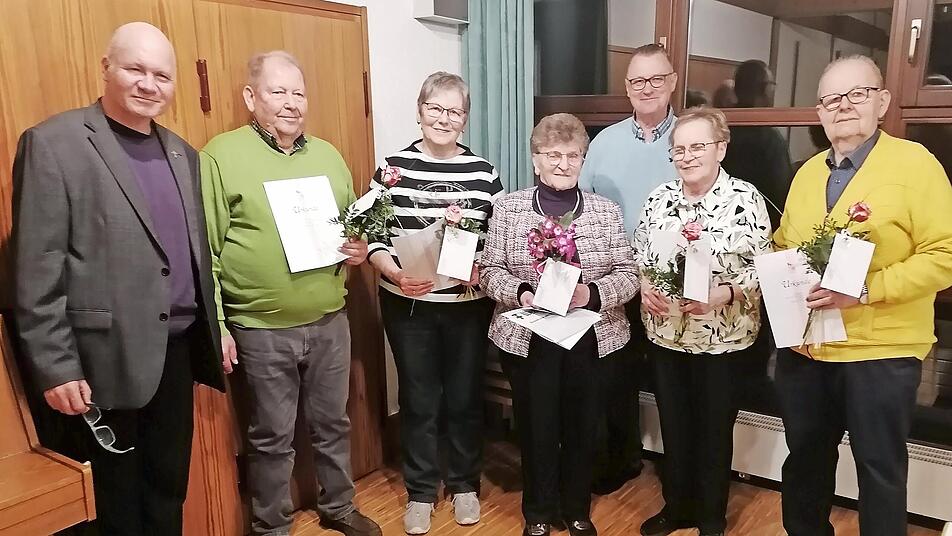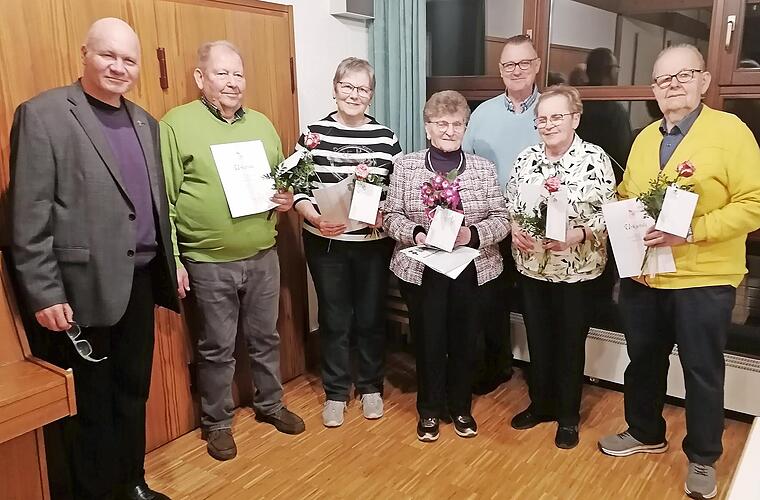 Sie ehrte fünf KAB-Mitglieder für ihre langjährige Mitgliedschaft: Paula Dremel (70 Jahre), Marga und Klaus Pomp (50 Jahre) sowie Ingrid und Fredi Wolf (50 Jahre).