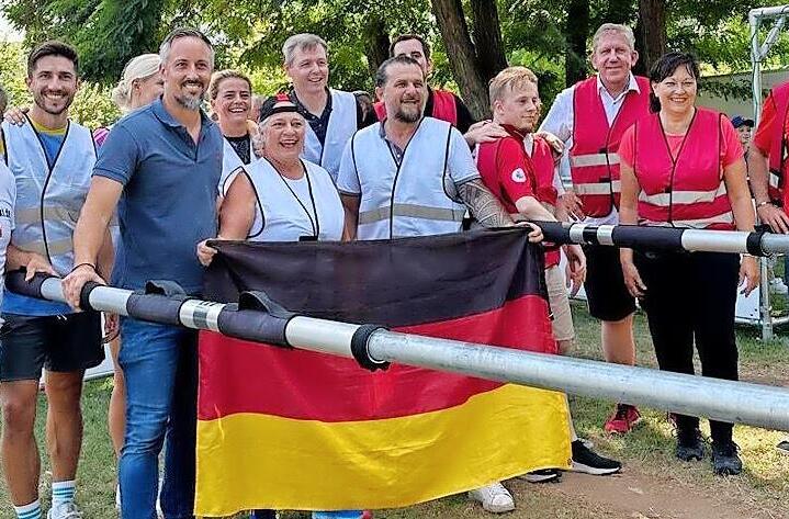 Am Nachmittag begrüßte der Vorsitzende Harald Reinhard die Bundestagsabgeordneten Thomas Silberhorn und Andreas Schwarz sowie mehrere Stadträte, die alle am Menschenkicker teilnahmen. Das Team von Stadträtin Daniela Reinfelder trat als Team Deutschland gegen ein Team der SPD mit Stadträtin Inge Eichhorn an. Das spannende Spiel wurde von Wolfgang Reichmann professionell moderiert. Benedikt Feuerstake pfiff als ausgebildeter Schiedsrichter streng nach den ganz besonderen Spielregeln des Menschenkickers. Mit einem knappen 6:4 gewann die deutsche Mannschaft.