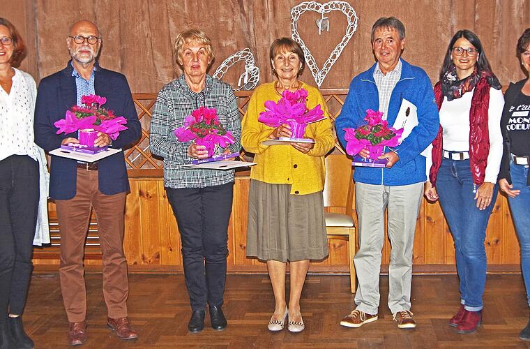 Bei den anschließenden Ehrungen wurde Thomas Siebenhaar für 25-jährige Mitgliedschaft mit der Urkunde in Silber und für 40-jährige Mitgliedschaft Rudolf und Ursula Dittrich, Lieselotte Freitag, Güntheer Kettler und Ingrid Scherbel mit der Ehrennadel in Gold ausgezeichnet.