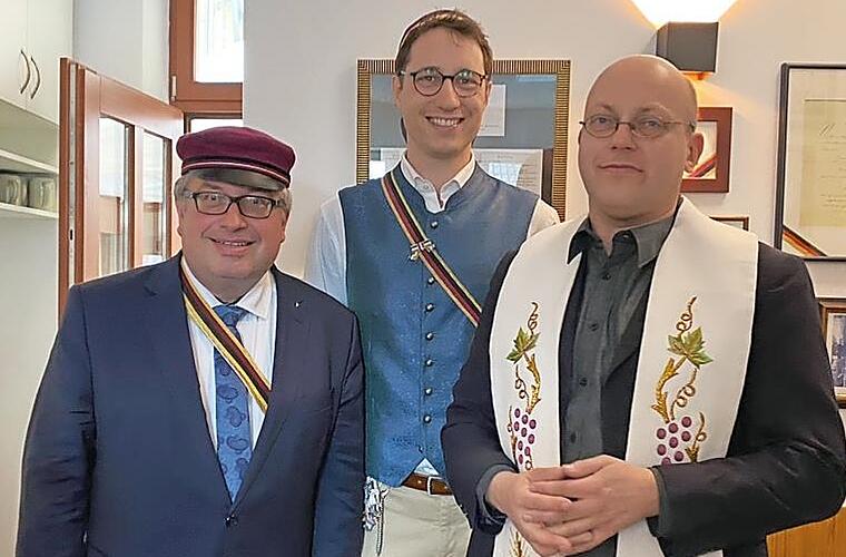 Zum Ende der Veranstaltung erhielt Dominik Maldoner, Vorsitzender des Hausbesitzervereins, für seinen engagierten Einsatz im Rahmen der Haussanierung das Ehrenband der Alemannia verliehen. red
