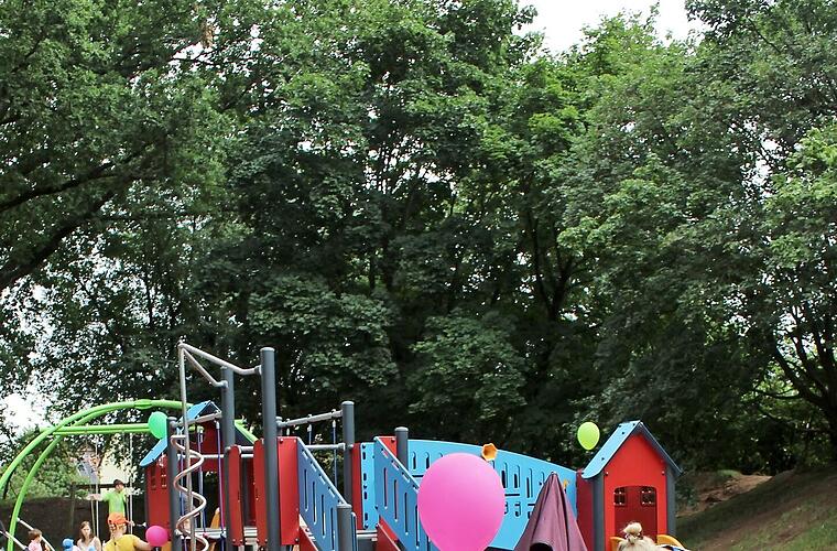 Übergabe Ein neuer Spielplatz in der Hirschaider Regnitzau bietet allen Kindern, auch denen mit bewegungsmotorischen oder geistigen Defiziten, viel Abwechslung.