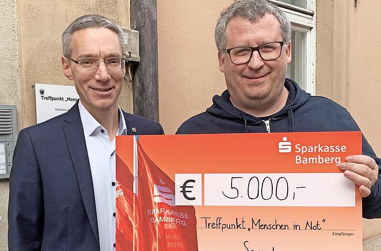 Der Lions Club Bamberg hat eine Spende in Höhe von 5000 Euro an den Treffpunkt „Menschen in Not“ in der Siechenstraße überreicht. Die Übergabe des symbolischen Schecks erfolgte kürzlich durch Arndt Brückner, Präsident des Clubs, an Peter Klein , den Einrichtungsleiter.