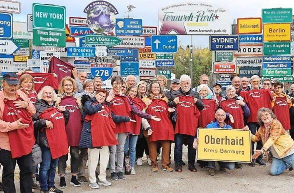Nun ist auch das Ortsschild von Oberhaid in der oberfränkischen Touristenattraktion „Fernweh-Park“ im Markt Oberkotzau bei Hof vertreten. Werner Hoffmann, Mitglied des Bürgervereins Oberhaid , war so begeistert von der Einrichtung , dass er beschloss, mit dem Bürgerverein einen Ausflug dorthin zu unternehmen. Fernwehpark-Initiator Klaus Beer erhielt ein Ortsschild von Oberhaid , das Bürgermeister Carsten Joneitis zur Verfügung gestellt hatte. Klaus Beer erzählte auch von der Idee des völkerverbindenden Friedensprojektes „Signs of Fame“ und so manche Anekdote vom Zusammentreffen mit über 500 beteiligten Stars aus Musik, Film, Fernsehen oder Sport. red