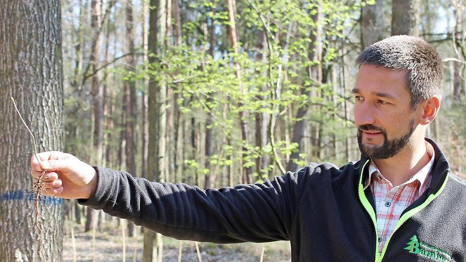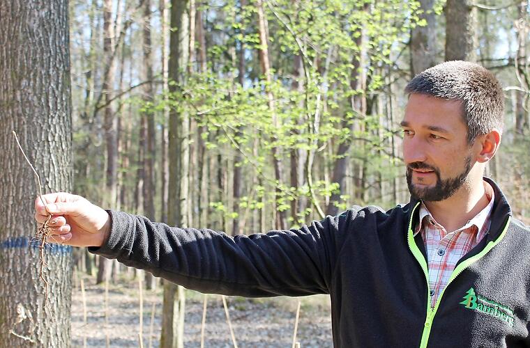 „Ideale Licht- und Schatten-Verhältnisse garantieren ein optimales Wachstum für die Pflanzen, und die finden wir hier“, so schwärmte Forstdirektor Gregor Schießl, Abteilungsleiter Forsten für Stadt und Landkreis Bamberg, als er sich mit Erstem Bürgermeister Bruno Kellner und dem Geschäftsführer der Waldbesitzervereinigung Bamberg, Patrick Hammerschmidt, in der Waldabteilung Lindach getroffen hatte. Gemeinsam verschafften sie sich einen Eindruck von der Entwicklung der dort vor sechs Monaten eingesetzten Baumsprösslinge.