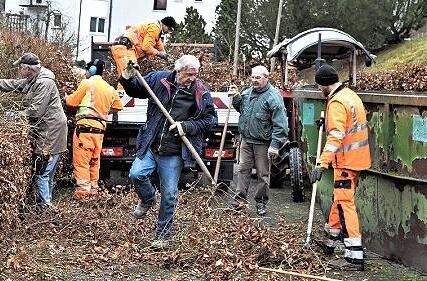 Eine erfreuliche Unterstützung erhielten die Strössendorfer von den Mitarbeitern des Bauhofes Altenkunstadt . Diese rückten mit ihren Fahrzeugen und Geräten an, worüber Wilfried Sünkel von den Strössendorfer Senioren seine Freude zum Ausdruck brachte. Gemeinsam gingen dann beide Gruppen ans Werk.