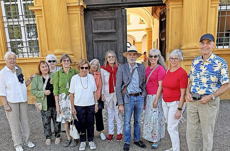 Am Vormittag führte Dr. Alfred Schelter, ein Clubmitglied und langjähriger Mitarbeiter im Denkmalschutz von Schloss Seehof, die Teilnehmer durch die beeindruckende Anlage. Dr. Schelter, der maßgeblich an der Restaurierung des Schlosses beteiligt war, begann den Rundgang mit einer Besichtigung der Wasserspiele. Anschließend wurden die Besucher in einer speziell für den Club organisierten Führung durch die prunkvollen Räumlichkeiten des Schlosses geleitet. Dabei erläuterte Dr. Schelter anschaulich die geschichtlichen Hintergründe, die verschiedenen Besitzverhältnisse des Schlosses über die Jahrhunderte hinweg und dessen einzigartige Besonderheiten. Zum krönenden Abschluss der Führung spazierte die Gruppe durch die weitläufigen Außenanlagen und bewunderte das Orangerieparterre, auf dem beeindruckende 168 Zitruspflanzen präsentiert wurden.