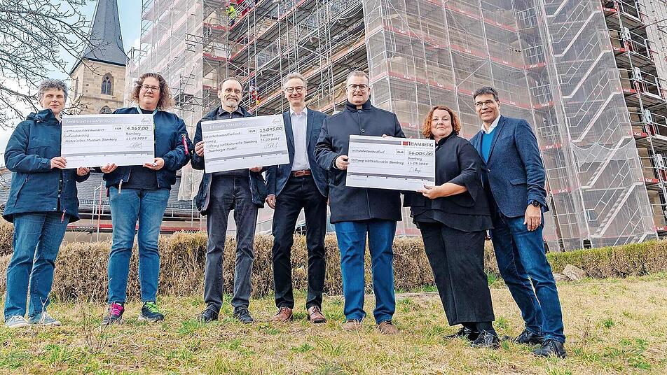 Das Gerüst, das derzeit noch das Kloster St. Michael umgibt, ist bald Geschichte. Im kommenden Jahr können Einheimische sowie Besucher das Kloster wieder ohne Bauzaun erleben. Es sind unter anderem die Gäste, die mit ihrer Teilnahme an den Stadtführungen nicht nur Bamberg entdecken, sondern gleichzeitig etwas für den Erhalt des Welterbes – und damit auch des Klosters St. Michael – tun. Denn dank eines Teils der Einnahmen aus den Stadtführungen 2024 konnte der Bamberg Tourismus & Kongress Service (TKS) gemeinsam mit der Gemeinschaft der zertifizierten Gästeführerinnen und Gästeführer eine beeindruckende Spende in Höhe von 33.465 Euro der Stiftung Weltkulturerbe Bamberg und den Museen der Stadt Bamberg überreichen.