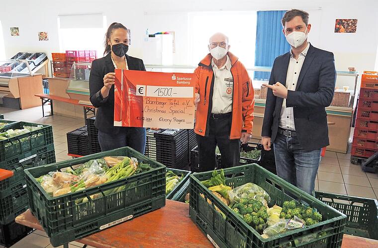 „Die Bamberger Bevölkerung unterstützt uns so toll, wir sind ja komplett ehrenamtlich“, sagt Dorsch . Kurz vor Weihnachten gab es nun zwei Mal Spenden-Besuch: Dritter Bürgermeister Wolfgang Metzner und Stephan Fiedler vom Aufseßhöflein übergaben einen Scheck über 2000 Euro . „Die Paare, die ich dort traue, können freiwillig 100 Euro an die Tafel spenden. Ich freue mich jedes Mal, dass sich wieder so viele beteiligt haben“, so Metzner. Der zweite Scheck kam von der Bambergerin Ebony Rogers. Sie hat 2020 ein ehrenamtliches Müllsammel-Projekt ins Leben gerufen, das sie zwischenzeitlich mit einer Spendenaktion für die Tafel verknüpft hat: Pro Kilo eingesammelten Mülls gehen 25 Cent auf das Spendenkonto. So kamen 750 Euro zusammen, die die Firma Weyermann – bei der Ebony Rogers angestellt ist – auf 1500 Euro verdoppelt hat. red