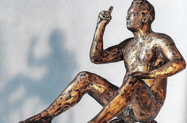 Das steht in einem Bändchen „Auto. Plastische Szenen zur Mobilität“, das im Bamberger Erich Weiß Verlag erschienen ist. Recht eigentlich ein Katalog zu Bronze- und Eisengüssen des Bildhauers Adelbert Heil, die er dem „Auto“-Motiv gewidmet hat und verschiedentlich ausgestellt, so in der Villa Dessauer und im Mai dieses Jahres im Garten von Schloss Seehof. Nicht zufällig, denn bei seinen Recherchen zur Geschichte der Bamberger Jesuiten stieß er auf den Kastellan – eine Art Hausmeister – Peter Maser (1732–1802), der im Schloss Ende des 18. Jahrhunderts wirkte und ein Gefährt konstruierte, das man vielleicht mit einem Kettcar vergleichen könnte.