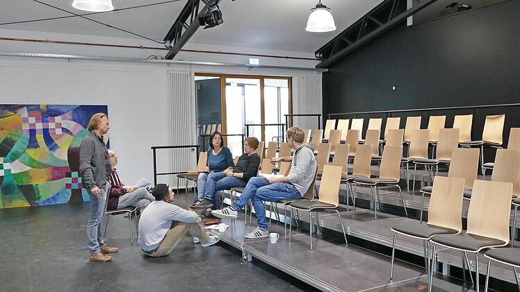 Im Zentrum des Gebäudeinneren lädt der Saal mit mobiler Sitztribüne für 100 Zuschauer ein. "Unbestuhlt haben wir Platz für 200 Leute", erklärt Harald Rink. Er öffnet die Tür zum "Backstage" mit Kostümen und Requisiten für Theaterstücke, zeigt aus dem Fenster auf die Freifläche draußen, die noch Sitzgelegenheiten bekommen soll. Mehrzweckräume für Workshops und Probenräume für Bands runden das Raumangebot ab.