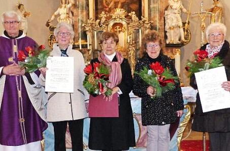 "Den fünf Frauen und einem Mann unseres Basilikachors sei aufrichtig und herzlich mit dieser schmucken Urkunde für ihre langjährige Tätigkeit als Chorsängerin und Chorsänger gedankt", sagte Pater Andreas Walko, der im Auftrag der Erzdiözese Bamberg die Ehrungen beim Sonntagsgottesdienst in der Marktleugaster Sankt Bartholomäus-Kirche vornahm. Gott werde ihr treues Mitwirken zu seiner Ehre und zur Erbauung der Gläubigen in reichem Maße lohnen.