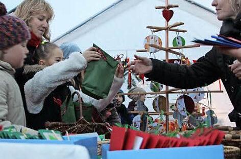 Doch auch das Handwerk kam am Sonntag nicht zu kurz. Selbst geschnitzte Holzfiguren schmückten den Weihnachtsmarkt genauso wie selbst gemachte Weihnachtstüten mit Überraschungen und Weihnachtskarten. Diese verkauften Schüler der Lonnerstadter Grundschule selbst. Auch lackierte Ton-Nikoläuse und andere selbst genähte Dekorationen gingen über die Weihnachtsladentheke.