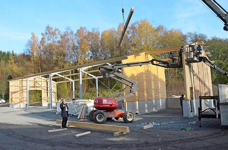 Die Gemeinde Stockheim errichtet derzeit eine neue Halle für den gemeindlichen Bauhof. Die neue Lagerhalle mit einer Länge von 30 Metern und einer Breite von zehn Metern wird nach einer neuen Technik erstellt. Hinzu kommen noch Leistungen in Eigenregie des Bauhofes, so dass die Lagerhalle auf Gesamtkosten von circa 180 000 Euro kommen wird.