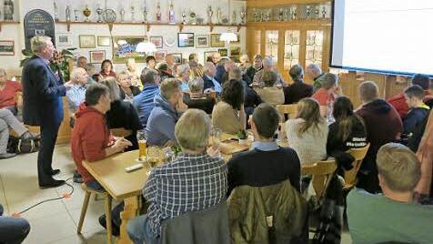 Bei der Bürgerversammlung hat Bürgermeister Paul Steins (CSU) über die Umbauarbeiten in Verwaltung, Kindergarten und Schule berichtet, die Gemeindefinanzen und die Möglichkeiten des Hochwasserschutzes erläutert sowie den Zusammenhang zwischen der örtlichen Bevölkerungsentwicklung und dem Problem der Wohnbauflächen dargestellt. Das Interesse an der Bürgerversammlung war groß: Über 80 Poxdorfer waren ins Sportheim gekommen, um sich anzuhören, was Steins zu berichten hatte.