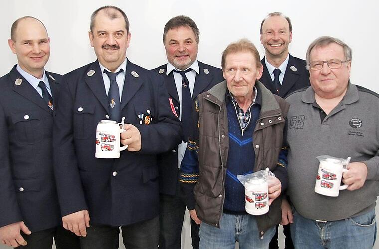 Der Vorsitzende Frank Degner konnte zusammen mit dem Kommandanten Markus Taschek und Bürgermeister Udo Siegel einige langjährige Mitglieder des Feuerwehrvereins auszeichnen. Seit 40 Jahren gehören dem Feuerwehrverein an: Reinhard Schulz, Wolfgang Schultheiß, Wilfried Göring, Joachim Diem. Seit 25 Jahren aktiv in der Wehr ist: Robert Müller. Seit 40 Jahren aktiv ist: Werner Schulz.