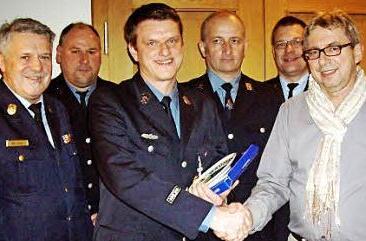 Für 25 Jahre aktiven Dienst wurde Andreas Böhm durch Bürgermeister Wolfgang Bauersachs mit dem Ehrenteller der Gemeinde ausgezeichnen.
