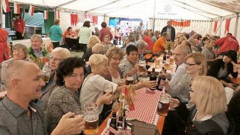 Mit einem Schlag zapfte Wolfrum in gekonnter Manier das Fass Fränkisch an und alle stießen auf einen fröhlichen Sonntag an. Bei der Musik von Werner Weiß und der Gruppe CJ & The Sunshine Gang am Abend ging die Feier weiter. Kulinarisch versorgten das Ratskeller-Team und Hansi Hümmer die Besucher mit fränkischen Schmankerln, Irene Ziegler sorgte für Kaffee und Kuchen.