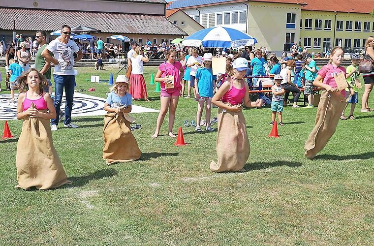 Dann wurden verschiedenen Stationen eröffnet, die alle Schüler durchlaufen konnten. Ob beim Barfußlabyrinth, beim Sackhüpfen, beim Dosenwerfen, beim Eierlaufen oder beim Torwandschießen waren die Kinder gefordert. Sehr beliebt war bei allen der Kettcar-Parcours, bei dem die Fahrgeschicklichkeit gefragt war. An jeder Station erhielten die Kinder einen Stempel auf ihren Laufzettel.