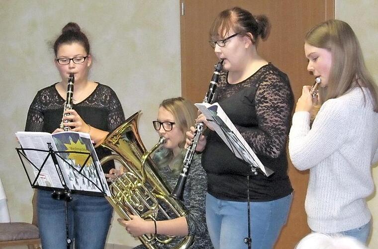 Viel Applaus gab es für Eva Hämmer (Euphonium), Sophia Weidner und Lisa Marie Hämmer (Klarinette), Viktoria Römert (Querflöte) und für die Geschwister Adrian und Helena Herbst (Klavier und Flöte).