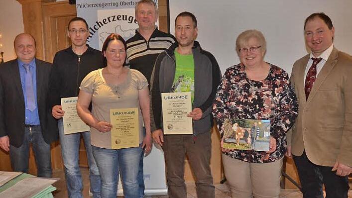 Für seine "Holstein"-Zucht wurde der Betrieb Martin und Hofmann GbR aus Glosberg ausgezeichnet - mit 10 040 Kilogramm Milch/Jahr sowie 768,9 Kilogramm Fett und Eiweiß.