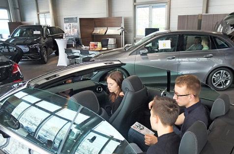 Der kaufmännische Ausbilder des Mercedes-Benz-Autohauses, Lukas Sasse, sorgte für eine einladende Atmosphäre. Der Clou: Die Gespräche fanden in Autos statt. Die Idee und Organisation kamen vom ehemaligen Leiter der FOS, Heinrich Bauer, und dem Wirtschaftsförderer des Landkreises Forchheim, Andreas Rösch. red