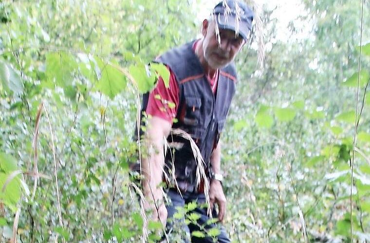 Unmittelbar neben dem Bach steigt das Gelände an. Um den Wald, der Büttert-Wald wie er genannt wird, steht es ganz und gar nicht gut. Überall liegen gefällte Bäume herum oder es schauen nur noch Baumstämme aus dem Boden. Der Biber hat ganze Arbeit geleistet. Günther Schlembach geht sogar davon aus, dass es mehrere sind. Was der Biber da umgelegt hat, hat schon rund 60 Jahre auf dem Buckel und hätte laut Günthter Schlembach gut und gerne weitere 80 Jahre stehen können: Es sind durchweg Edelhölzer: Kirschen und Hainbuchen.