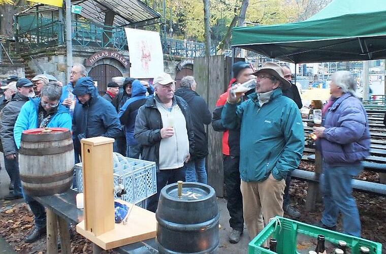 Glücklicherweise war das Wetter nicht zu kalt, auch der Regen war nicht zu stark, so dass sich die Anwesenden die mitgebrachten Brauereierzeugnisse munden lassen konnten.