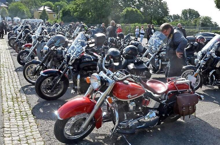 Als der Konvoi aus der Coburger Region auf den Volksfestplatz in Schweinfurt rollt, ist noch viel Raum auf dem rund 30 000 Quadratmeter großen Gelände. Ein paar Leute stehen vor dem kleinen Getränkestand. Die angekündigten 250 sind erreicht und verlieren sich ein wenig auf dem Areal. Ordner weisen Plätze zu. Es füllt sich aber rasch. "Mit so vielen haben wir nicht gerechnet" muss Silvana Guck zugeben. "Aber wir freuen uns natürlich", stellt sie gleich noch klar. Es nimmt kein Ende. Strahlende Gesichter bei den Helferinnen, die mit Spendenbüchsen herum gehen. Die Biker werfen tüchtig ein - es wird für ein Kinderhospiz gesammelt. "Biken ist nicht einfach ein Hobby, es ist eine Lebenseinstellung. Biker haben hohe Empathie, helfen sich, stehen füreinander ein", erklärt Blacky. Dafür, dass so viele gekommen sind, hat er nur ein Wort: "Wahnsinn!" Die Polizei wird später von 5000 oder mehr Fahrern reden. Andere Quellen nennen Zahlen um die 10 000. Die Wahrheit wird irgendwo dazwischen liegen. Als der angekündigte Korso sich dann auf einem etwa neun Kilometer langen Rundkurs durch die Stadt wälzt, ist Schweinfurt jedenfalls von Motorrädern geflutet.