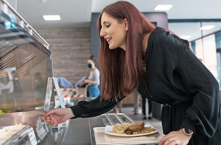 Die Essensausgabe erfolgt in einem Free-Flow-System, wobei lange Ausgabetheken durch einzelne frei stehende Ausgabeeinheiten ersetzt werden. So können Wartezeiten bei der Essensausgabe deutlich verringert werden. red