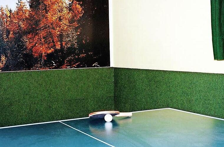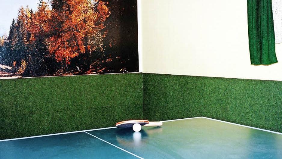 Das schokoladenbraune Furnierholz der Möbel erinnert an die Zeiten vor Ikea. Blumenmotive in poppigen Farben überziehen großzügig Wandtapeten, Kacheln, Vorhänge und Steppdecken. Unübersehbar sind die in den 70er-Jahren beliebten Stickbilder, die Kissen und Wandschmuck zieren. Albrecht Dürers "Betende Hände" hängen über dem Bett. Die Wand im Wohnzimmer ziert eine romantische Ansicht von Rothenburg ob der Tauber. Der Hobbykeller ist natürlich mit einer Tischtennisplatte und einer Fototapete ausgestattet. Sogar an eine Bar haben Herr und Frau B. für Feste gedacht.