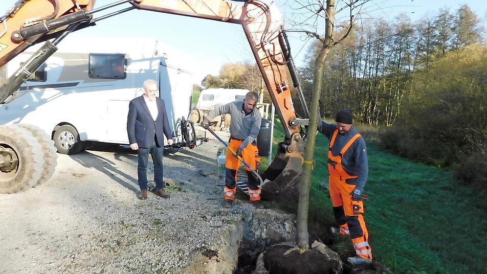 Auf der großen Parkfläche unterhalb der Friedrich-Ellrodt-Schule ist auch Platz für insgesamt acht Wohnmobile vorhanden. Dieser Bereich wird nun durch die Pflanzung von sieben Bäumen der blühenden Vog...